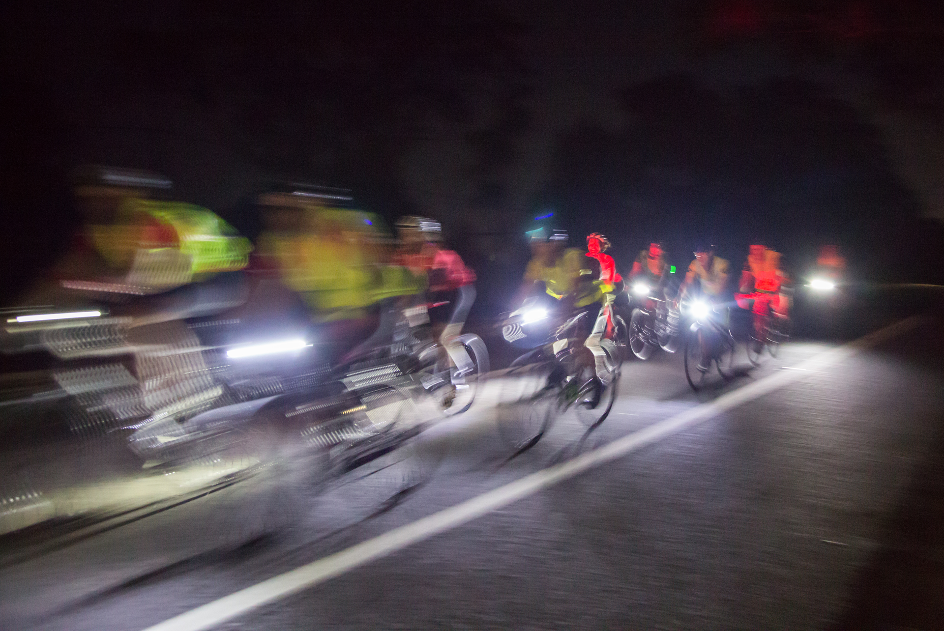 Riders need to register on-line before Friday, then sign in and satisfy a lighting check on the night. Without two independent front lights, two independent rear lights, a red reflector attached to the bike and a reflective vest we cannot sign you in. If in doubt read the lighting rules.