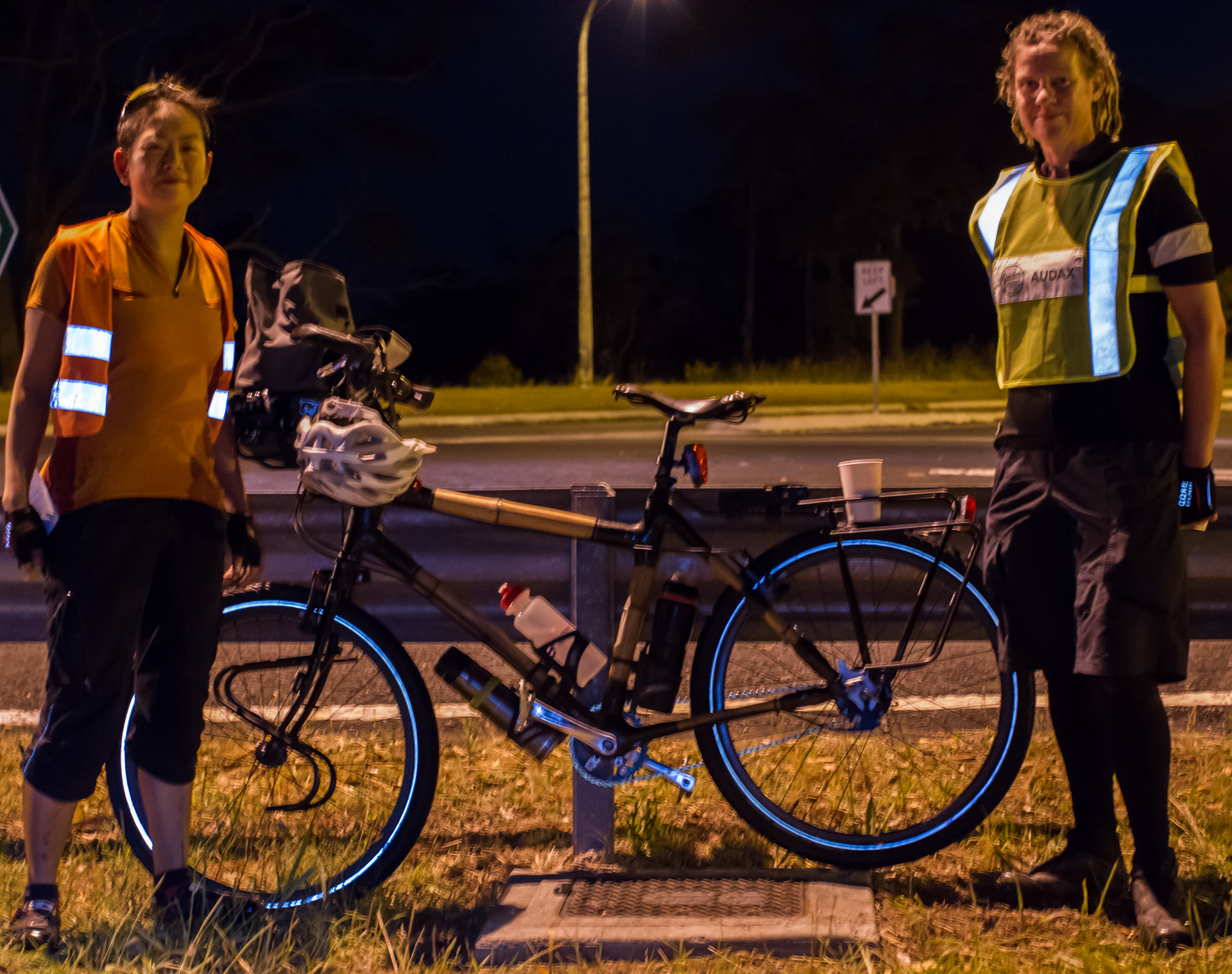 Partha arrived at 10:30, so 13 1/2 hours riding. You may have seen him on the night riding a Vivente Touring bike with a full size floor pump sticking out of a pannier. What a legend!